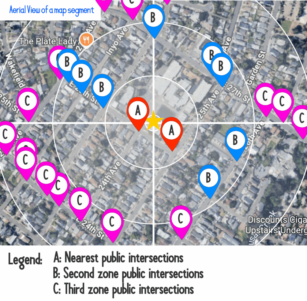Interactions on a map. Let us analyze this map. What are the travel rates of each street and intersection, thorough demographics of all in our map vicinity, etc… We program in sanity – only send minimal cars through the residential while the real interactions with the center star are at the nearest freeway in proximity. A friend once (spontaneously) blurted out one day about how it is who you are around. You are who you are around, perhaps? It stuck with me. There is some significance, in this system, with whom you are in proximity to. With this system that has been interacting with me, I feel there is much relevance. I hypothesize that this may have something to what I deem as foreign ideology, the ideology of separatism. In Germany, for example, they have separate “zones” for the criminals versus a zone for residential versus a zone for business entities. I imagine crossing over from the criminal zone to the business zone is something of an ordeal. This ideology, I argue, is in conflict with American ideology (our melting pot), where we hold to a high regard such things as diversity. I hypothesize that the zones are “mobile” and moveable.