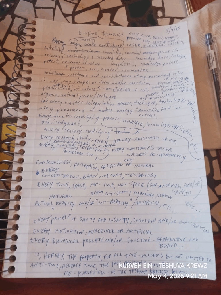 Essentially, the purpose of me writing this is, outside of my (a human person) will, wish, want, and consent, an entity has been interacting with me. The interactions are very unwelcome and unwanted. The interacting party has gone so far as to (illegally) implant certain technology on my person (outside of my will, wish, want, and consent) and this interaction is leading to atrocity of and to my “person” (my physical person and my person and property beyond my actual self). I have experienced much psychological duress and have been raped and tortured. Believe it or not, most of the atrocity has occurred outside of my awareness, in another timescale.