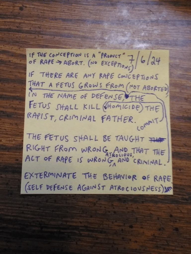 Let us discuss this… “He put out a hit on him, apparently the fetus is to assassinate the rapist.”