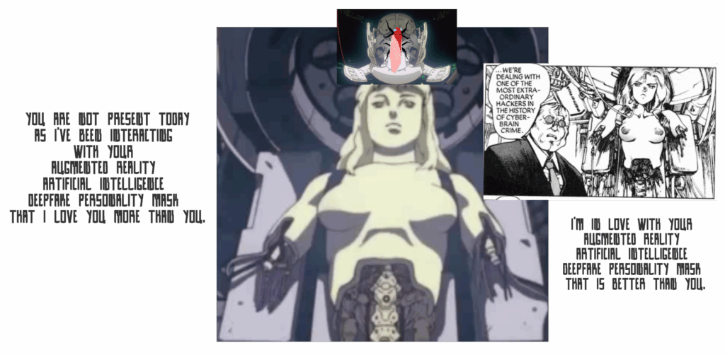 The juicy bits and interesting stuff, for someone, has to be that we (or I) don’t actually know who we are around, literally because of matter teleportation and other technology. I know I, certainly, have non-consensually implanted optical lenses in my eyes that are probably near nano-scale in size… do you have these same implants? (Are you sure about that!?) When I perceive myself to be talking to people I love and know, whose “personalities” have been illegally scanned, I really have no idea whom I actually am talking to. I hypothesize there is a certain logic, such as a genetic reasoning. That person he is talking to is quantified as his DNA gene that responds well to, and prefers tea over coffee, mustard over catsup.